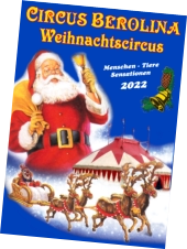 Wir freuen uns sehr, Sie heute auf der Homepage des CIRCUS BEROLINA (Tourneecircus) begrüßen zu dürfen. Hier finden Sie alle wichtigen Informationen zu unserem Unternehmen. Klicken Sie zum Beispiel im nebenstehenden Bild auf unser Programmheft und erfahren Sie alles über unsere Shows.Informationen zu den weiteren Berolina-Unternehmen, dem CIRCUS BEROLINA WEIHNACHTSCIRCUS in Waltersdorf und dem CIRCUS BUSCH-BEROLINA, finden Sie auf deren Internetseiten, die Sie durch einen Klick auf das entsprechende Programmheft erreichen.