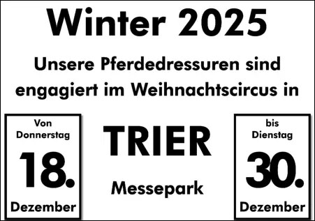 Sichern Sie sich jetzt die besten Plätze für unsere Show. Alle wichtigen Informationen zu den Plätzen, Preisen und Sonderangeboten, Kassenöffnungszeiten und Vorverkauf erhalten Sie, wenn Sie im untenstehenden Bild auf das Ticket klicken.Natürlich halten wir für Sie auch in dieser Saison einen Internet-Gutschein bereit, den Sie ausdrucken oder auf dem Smartphone an der Kasse vorzeigen können.